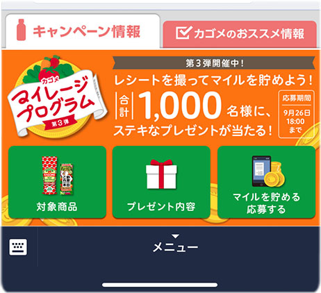 レシートを撮って、マイルを貯めよう!合計1,000名様に豪華賞品をプレゼント!カゴメマイレージプログラム