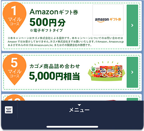 1マイルコース:Amazonギフト券500円分:890名様