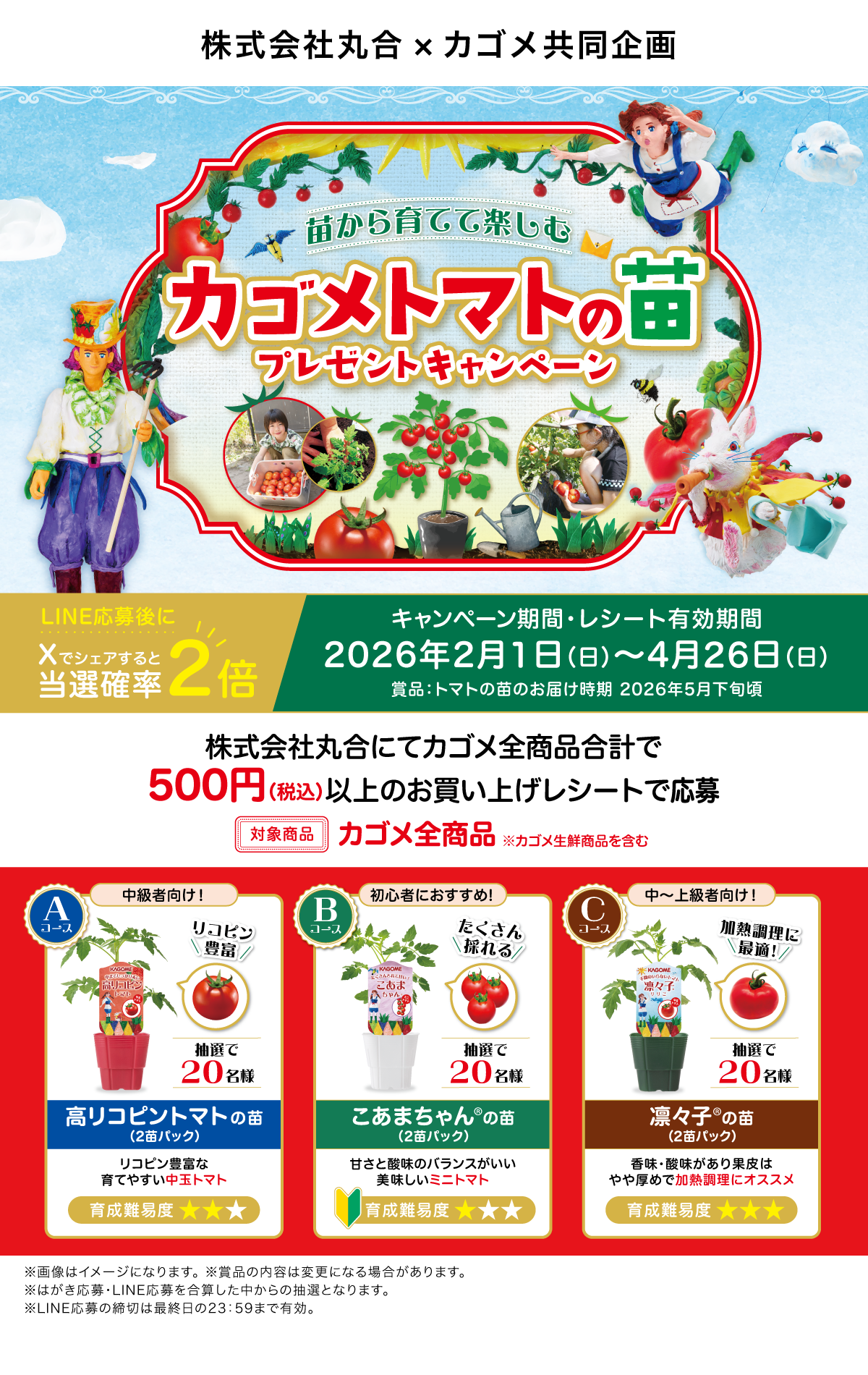 当キャンペーンでは、はがき応募もしくはカゴメ公式LINEアカウントからの応募になります。