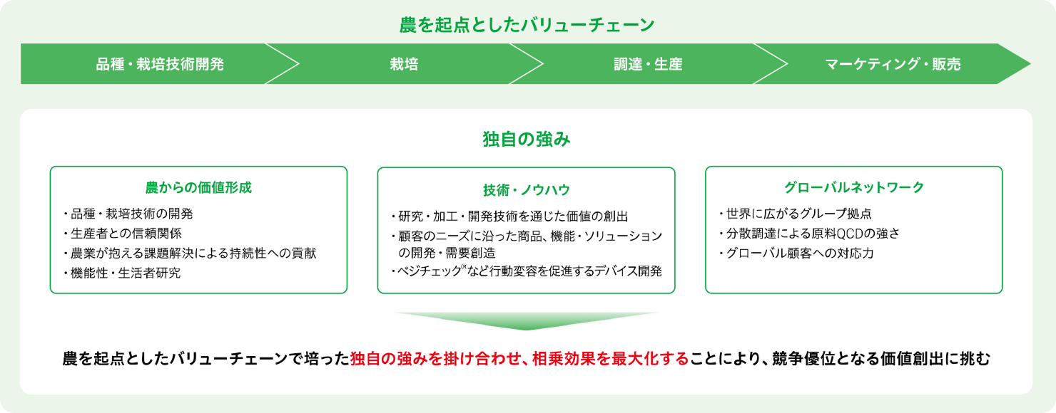 テーマ「農から価値を形成するバリューチェーン」を進化させ、国内外における競争優位性を築く