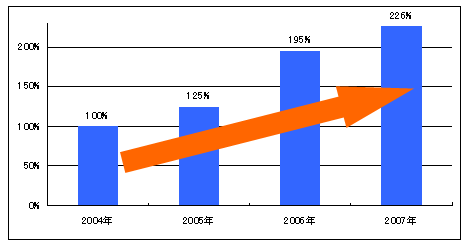 ■発売日 2009年2月1日(日) ■発売地区 全国(沖縄を除く) ■販売目標 8億円(2009年2月〜2010年3月) 【参考資料】 1.コラーゲンとは・・・ 動物体内に最も多く含まれるタンパク質。細胞間の隙間を埋める形で線維状のタンパク質として存在し、特に軟骨、皮膚、腱などの主要な構成成分になっている。 「ビフィズス&コラーゲン すっきりタイプ」のコラーゲンは、国産の鮭の皮から抽出した、低分子で吸収性の高いサーモンコラーゲンを使用している。 2.コラーゲン関連健康食品市場推移(2004年を100とした場合の伸び率) ※出典:KSPーPOS ![]() 3.代表的な機能成分の認知度と摂取意向(10〜60代女性) ※出典:日本能率協会「健康ニーズと情報行動に関する調査2007」(n=582) ![]() |