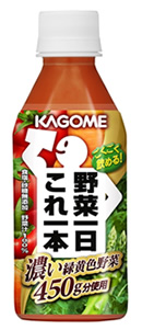 カゴメ株式会社(社長:西秀訓)は、「野菜一日これ一本 濃い緑黄色野菜」280gを2010年5月11日(火)から、全国で発売します。 「野菜一日これ一本 濃い緑黄色野菜」280gは、450g分の野菜を使用しており、従来の「野菜一日これ一本」280gと比べ、野菜使用量が100g分増えました。また、緑黄色野菜だけを使用したことで、βカロテンが約1.2倍アップし、健康志向の高い30~50代の働く男性に対応した商品になっております。 年間販売金額100億円(カゴメ出荷ベース)を超える「野菜一日これ一本」シリーズは、さらに多くのお客様に選んでいただける商品を目指します。