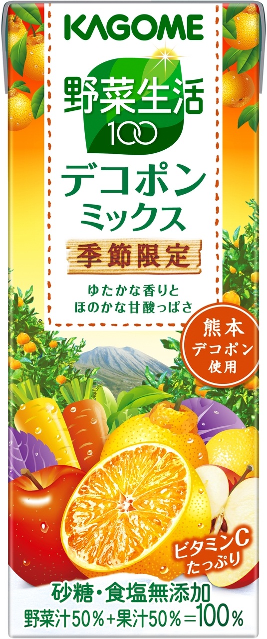 カゴメ株式会社(社長:寺田直行)は、「野菜生活100 デコポンミックス」200mlを2月25日(火)から3月末まで(※1)期間限定にて全国で発売いたします。