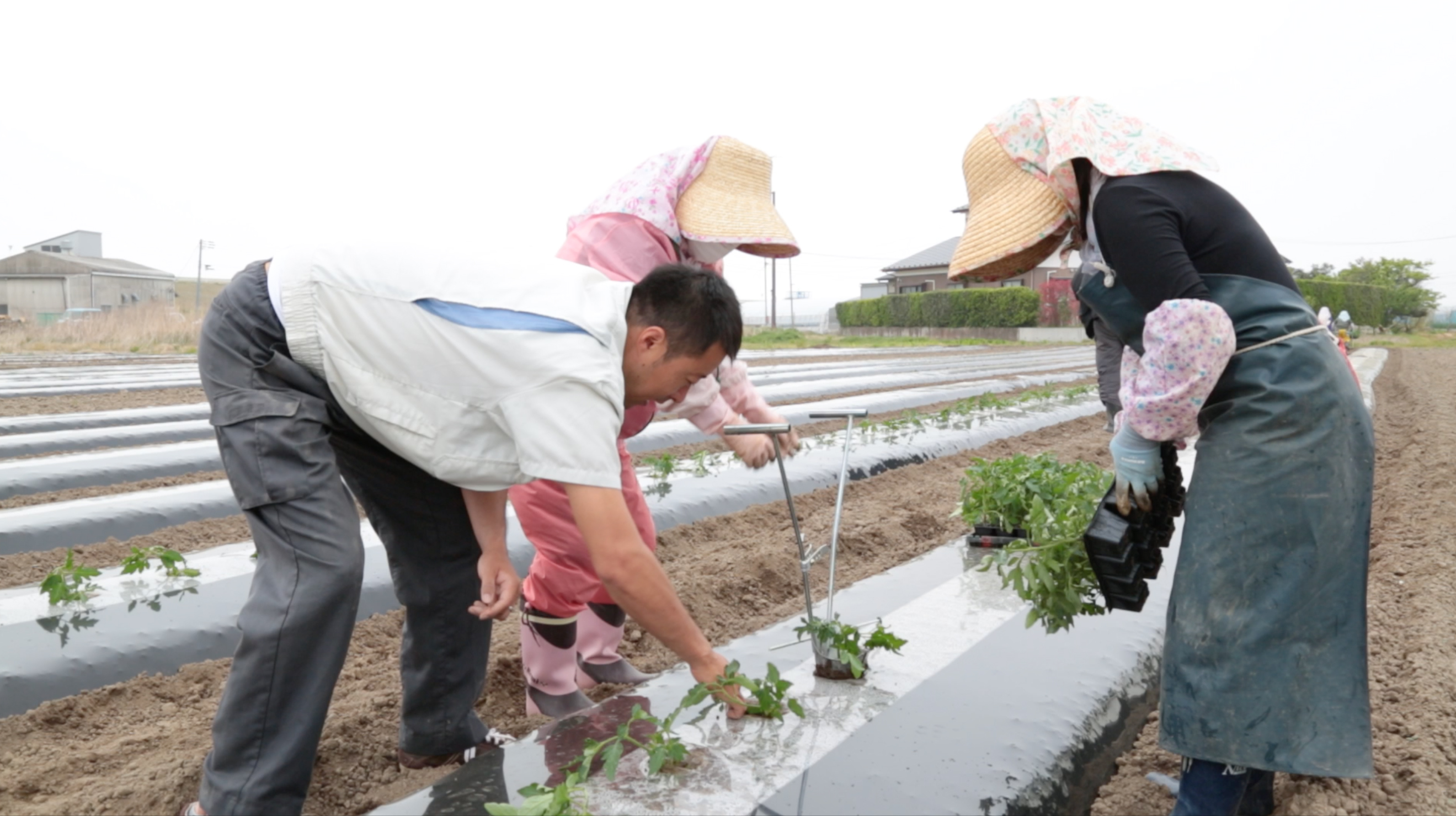 宮城県においても産地拡大に取組んでおり、2012年度に0.05haであった加工用トマトの栽培面積は、2013年度に2.13ha、本年度は6.47haと大幅に拡大しており、本年度の収穫量は宮城県全てで約400トンを予定しています。カゴメと契約栽培を始めた農家の中には、東松島などの農業生産法人も含まれています。これらの地域は、東日本大震災の被害を受けた農地を集約し、新たに大規模農業に取組むことで復興を目指しています。今月より、各契約農家にて、加工用トマト苗の定植(苗を植えること)が始まり、宮城県内にて加工用トマト栽培が本格的にスタートしました。