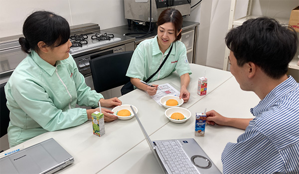 外食店向けのバーガー用ソースや飲料の商品開発を担当しています。先方の要望を受け、チームでメニューをアイディエーションし、試作品を提案しています。採用の連絡をいただく瞬間はうれしいですが、アイデアを膨らませるために、いろいろなお店の新商品試食や料理調査をする時間も楽しいです。