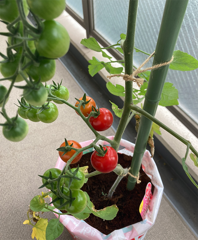 カゴメの苗と培養土を使って、子どもと一緒にベランダでミニトマトを栽培しています。思った以上に簡単でおいしいミニトマトがたくさん収穫でき、感動しました。来年はどんな野菜を育てようかと計画中です。