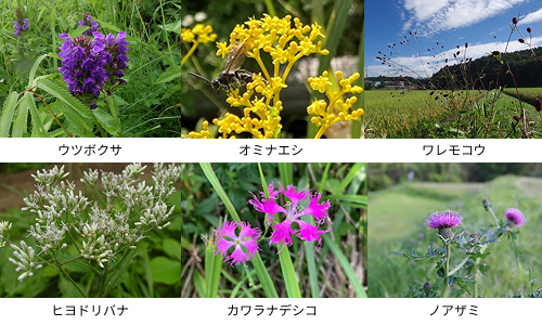 日本の農地は圃場整備により、畦畔の草地に生える在来植物が除去され減少し、外来植物が増加しており、野菜生活ファームも同様であることから、この施設が存在する富士見町内の在来植物を探索し種子を採取し、播種・育苗し、2021年と2022年に野菜生活ファームの法面等に約1万本の苗を植栽し、定着状況をモニタリングすることで地域の在来植物の再生を図っています。