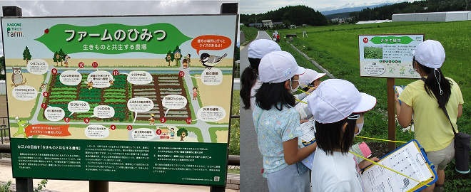 また、この農場のしくみを知っていただいたり、生きものに親しみ生きものを大切にする気持ちを醸成するため、クイズラリーで楽しみながら学んでいただく工夫をしています。