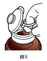 ① 外蓋を開け、中栓のフタの出っ張り部分に指をかけます(図1)。