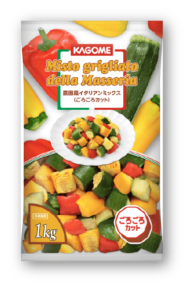 地中海性気候で育った彩り鮮やかな5種類のイタリア産野菜を小さめにカット、弱めにグリル加工したミックス品です。スープや料理のトッピングなど幅広いメニューにご使用いただけます。