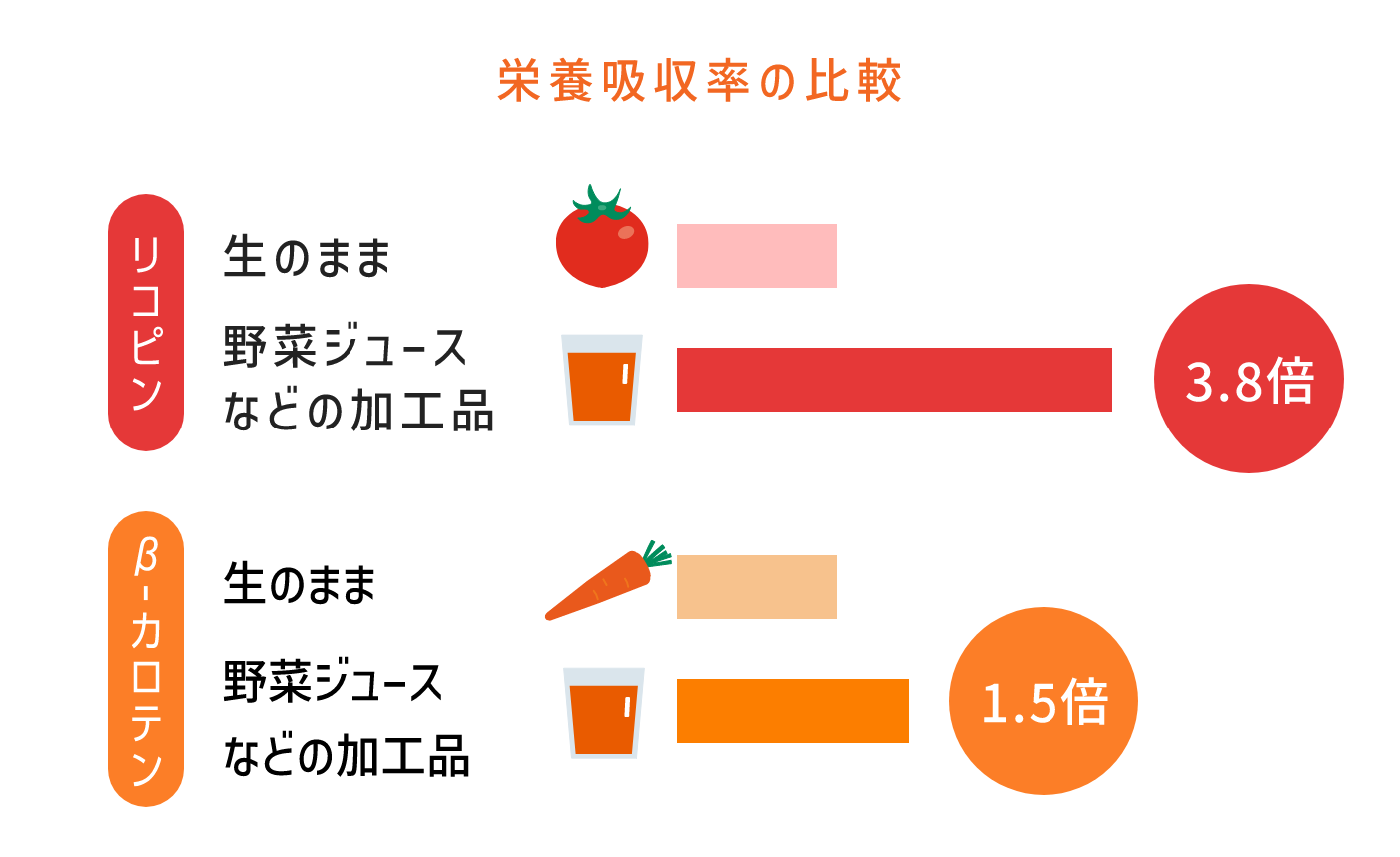 リコピンやβ―カロテンは野菜ジュース等の加工品にすることで栄養吸収が上がる!