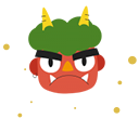 ごはんをにぎり三角おにぎりを2個作る。のりで顔、チーズで角、かつお節で髪の毛をつけ、鬼のおにぎりを作る。