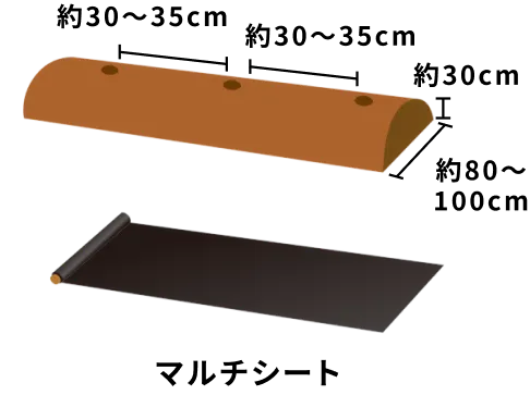 土が付くことによる病害発生の予防、雑草予防、泥はね予防、乾燥予防などのためにマルチシートの使用をおすすめします。