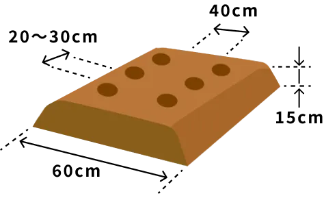 幅約60cm、高さ15cmのうねを作ります。