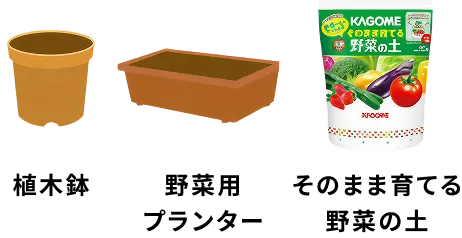 ※「KAGOMEそのまま育てる野菜の土」なら、袋にそのまま植え付けるだけで栽培が始められます。