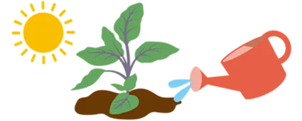 ナスの順調な生育には、「良い土」「日当たり」「温度」「水やりと肥料」が大切です。