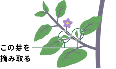 苗は成長すると茎と葉の付け根部分から新芽が出てきます。これを「わき芽」といい、わき芽を除去する作業を「芽かき」といいます。