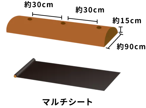 土が付くことによる病害発生の予防、雑草予防、泥はね予防、乾燥予防などのためにマルチシートの使用をおすすめします。