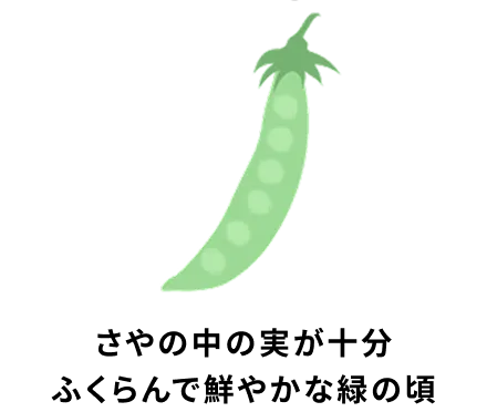 さやの中の実が十分膨らんで、鮮やかな緑色のうちに収穫します。