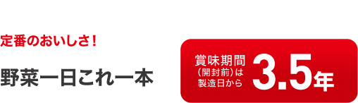 「野菜一日これ一本 長期保存用」は、腐食に強いポリエステルフィルムをコーティングした缶蓋を採用、長期間経過してもおいしく飲めるように野菜を組み合わせることで、5.5年の賞味期間を実現しました。1缶に野菜1日分350g分をぎゅっと濃縮して使用。緑黄色野菜を中心に、30品目の野菜がバランスよく入っています。食塩・砂糖・栄養強化剤不使用。