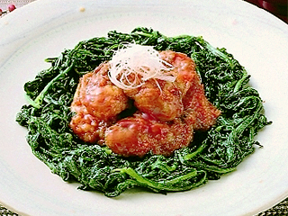 | 4 | ごま油を熱し、小松菜を炒め、(3)のかきと盛り合わせる。 |