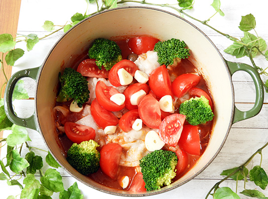 ごろごろにんにくとたっぷりトマトの無水鍋