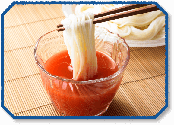 めんつゆの美味しさを徹底的に分析し、昆布の代わりにトマトを、醤油の代わりにたまねぎを使い、さっぱりとした美味しさに仕上げました。先味にトマト、中味にたまねぎ、後味に鰹だし。